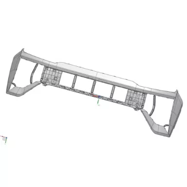 Este molde de injeção de corpo de pára-choque dianteiro automotivo é usado para produzir capas de pára-choque dianteiro. O pára-choque de plástico consiste em um painel externo, material de amortecimento e uma barra transversal de aço. Está disponível em dois tipos de linha de partição: linha de partição externa (linha de partição visível) e linha de partição interna (linha de partição oculta, adequada para veículos de médio a alto padrão). As funções principais incluem proteção contra colisão, instalação de componentes, ventilação, decoração e proteção de pedestres.